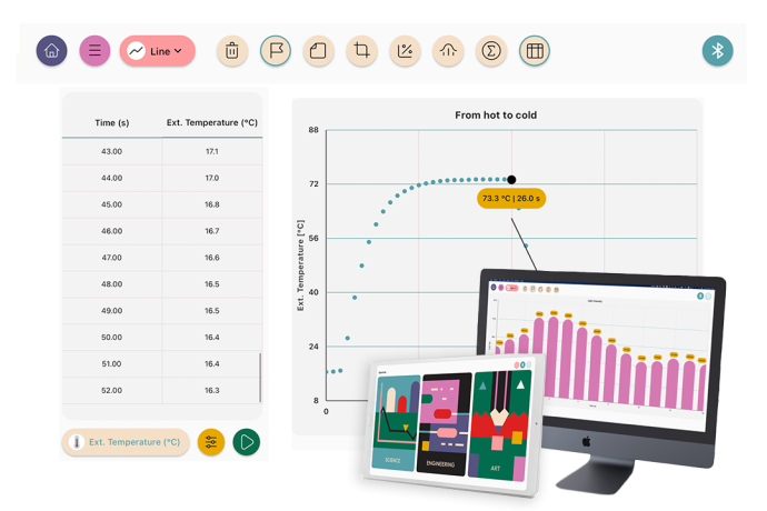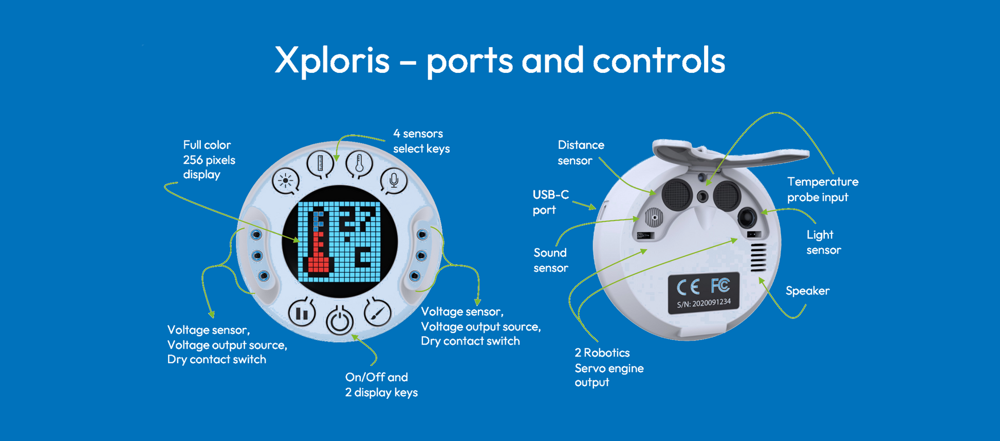 The Xploris by Labdisc is a powerful all-in-one STEAM tool, packed with the latest modern electronic enabling full coverage of k-6 science, datalogging, art/multimedia and coding. The Xploris has 5 Built-in sensors, measuring temperature, light, sound, distance and voltage are all calibration free and ready to use on turn on.